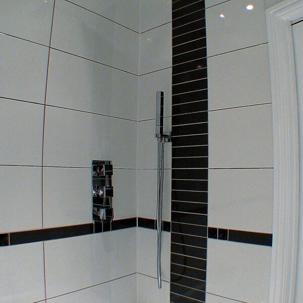 • Tiling and grouting walls up to the ceiling.