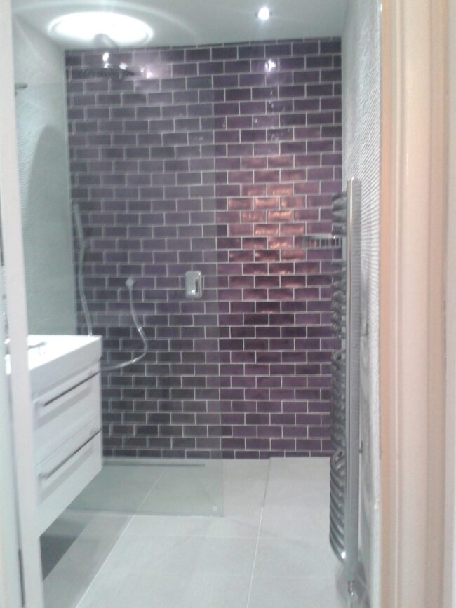 Full tiling ( ceramic wall tiles + mosaic, granite floor tiles)