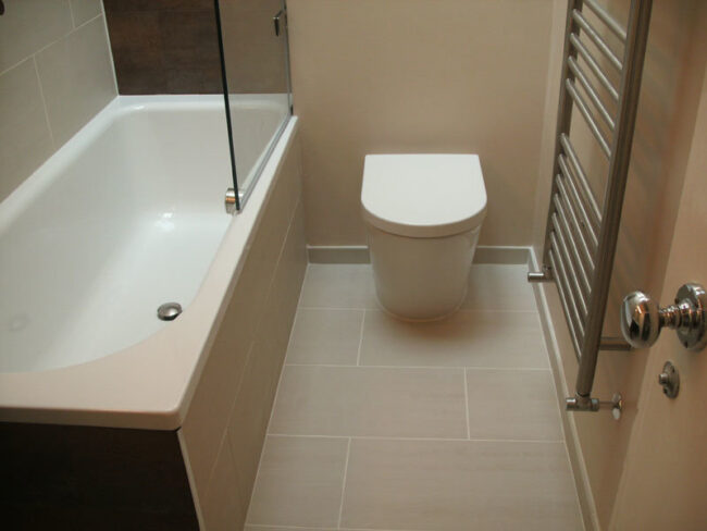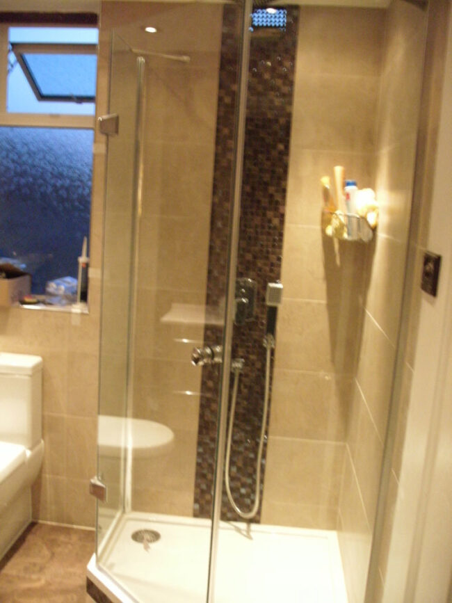 -Install new suite, plumbing, full tiling (travertine tiles)
